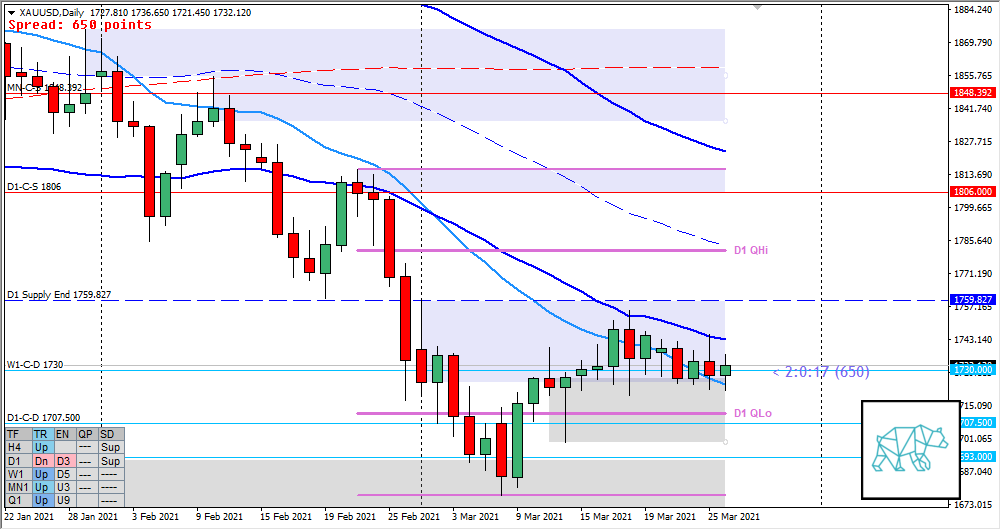 - Due to price consolidating between D1 Supply and Demand the market seems to be balancing. Unless price can take either out there is no more probable directional cue. Mixed trend confirms this.