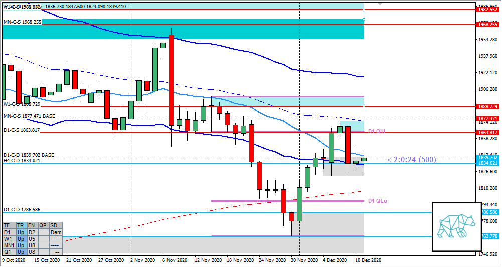 - Price returned to D1-C-D1839.702 BASE and consolidating within demand after having formed a Bear Engulf giving D1-C‑S 1863.817