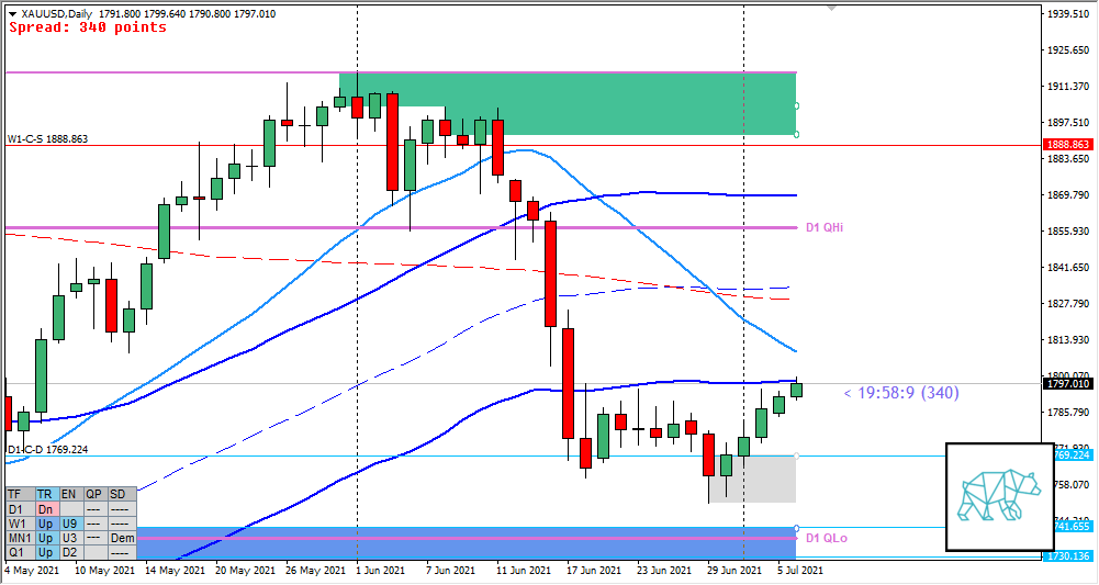 - D1 Three Inside Up giving D1-C‑D 1769.224 with continuation higher taking out D1 Supply