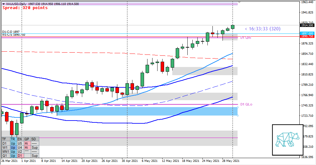 - Price has reached MN/W1/D1 QHi but has not shown any reversal pattern (yet)