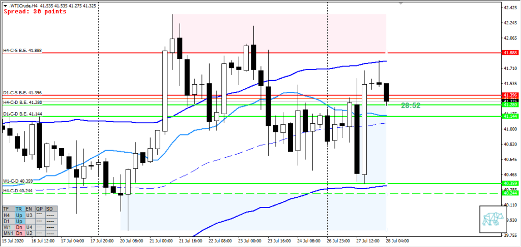 - Newly formed H4 bull engulf H4-C‑D B.E. 41.280 creating new demand on top of weekly demand although no follow-through. Instead followed by consolidation