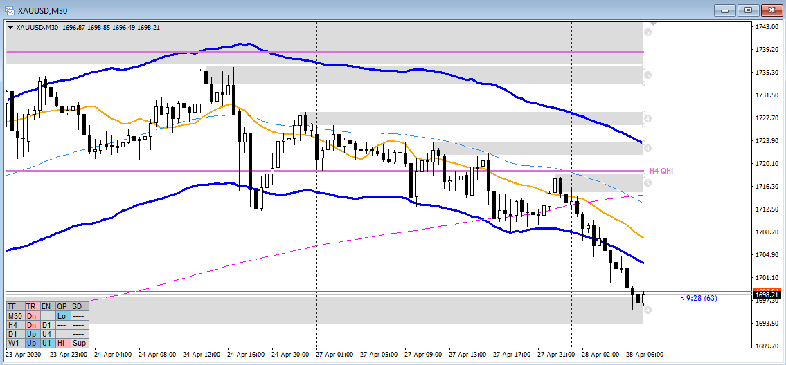 - M30: Move down to 1697 area, possible short term swing low