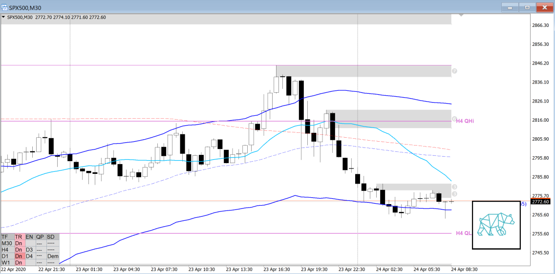 - H4: H4 Q points active after newly formed H4 Supply ZOI. Price nearing QLo at Demand ZOI (5)